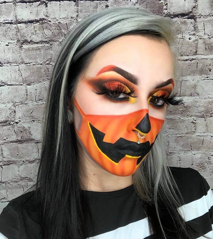 The pumpkin ghoul is classic, but this makeup has some creativity because it wears a mask.