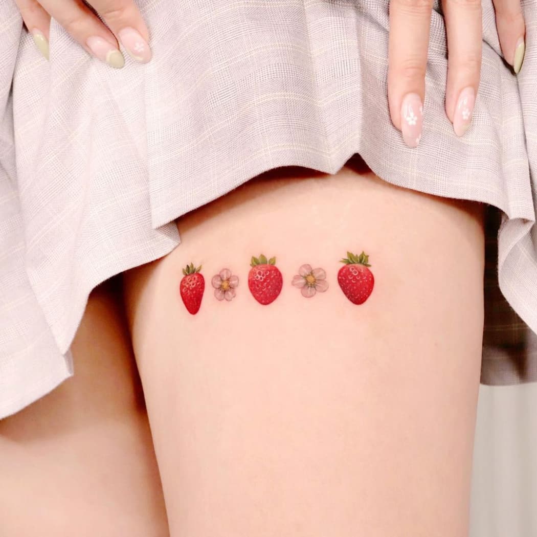 It is worth mentioning that this fruit is associated with the goddess Venus, so strawberry tattoos also symbolize femininity.